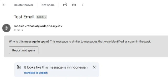 Dan klik Report Not Spam
