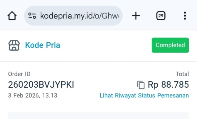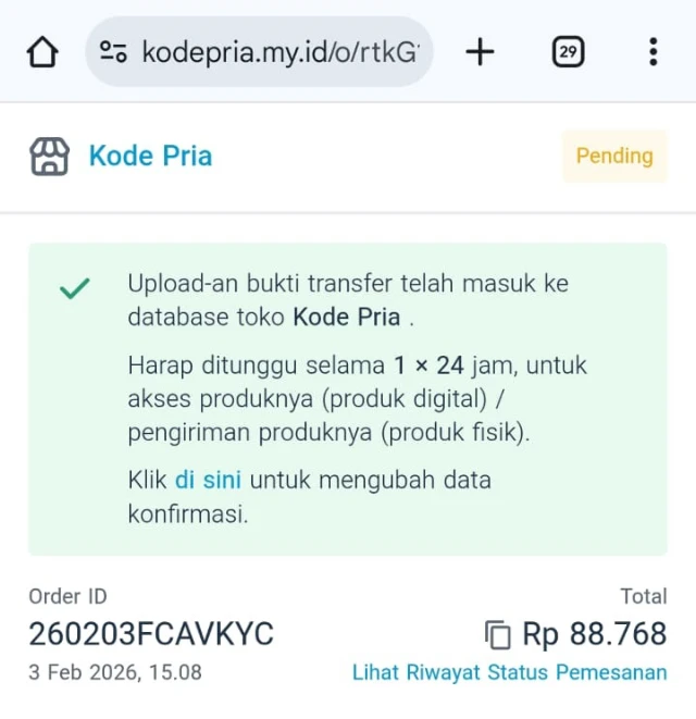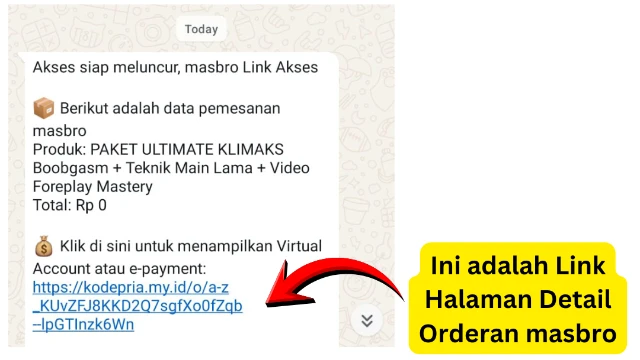 Link Halaman Detail Orderan juga sudah dikirim di pesan whatsapp yang pertama masbro dapatkan.