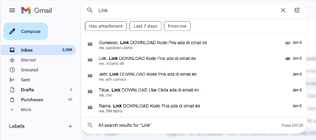Contoh Search email: